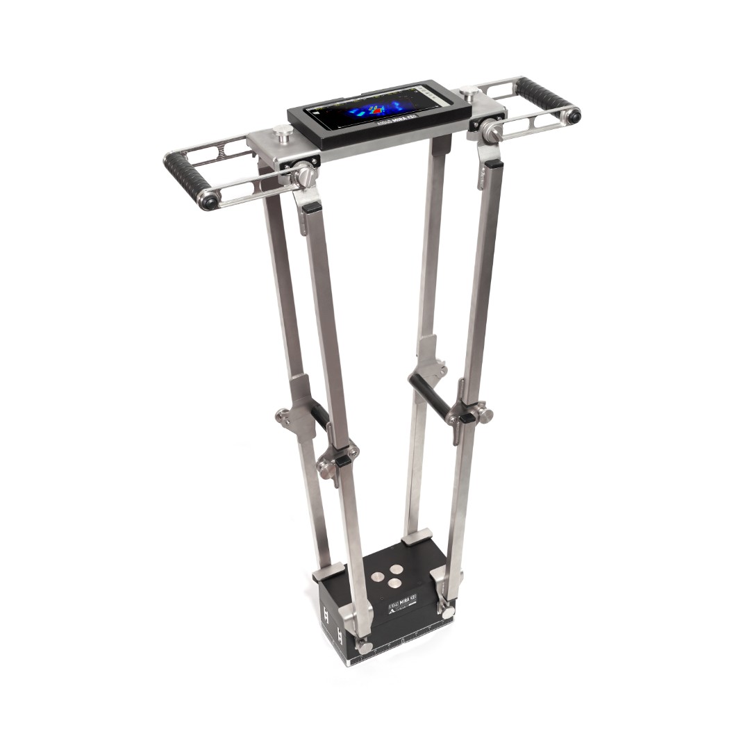 One of the frequent applications of the ultrasonic concrete tomographs of MIRA Series is 2-dimensional scanning of concrete floors for locating reinforcement elements and material flaws. When scanning large areas, the work might become an exhausting activity for operator. Using the MH100 scanning tool the scanning performance can be significantly speeded up on a very comfortable manner for operator.