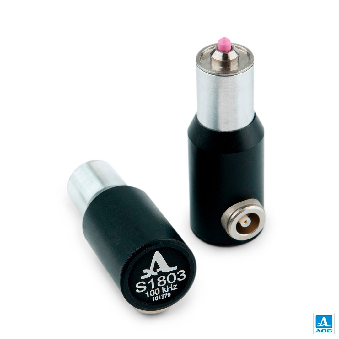 A general-purpose low-frequency transducer with the nominal frequency of 100 KHz for the dry-point-contact (DPC) excitation or acquiring longitudinal ultrasonic waves in highly scattering materials (concrete, wood, stones etc.)