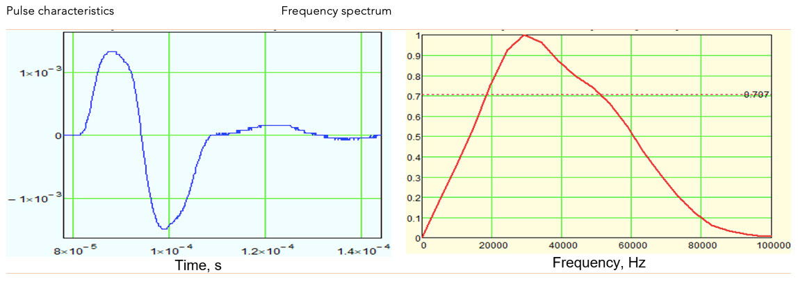 | Maximum excitation pulse voltage, V: | ± 250 V |