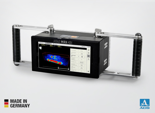 A1040 MIRA 3D is a low-frequency ultrasonic tomography system suitable for manual and automated assessment of concrete structures.